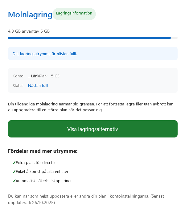 En bluff om att ditt lagringsutrymme är nästan slut – Varning – klicka inte på något!